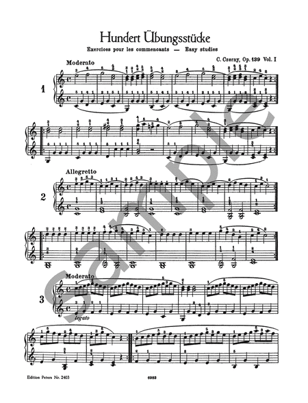 Czerny - 100 Easy Progressive Studies For Piano Op 139 Book