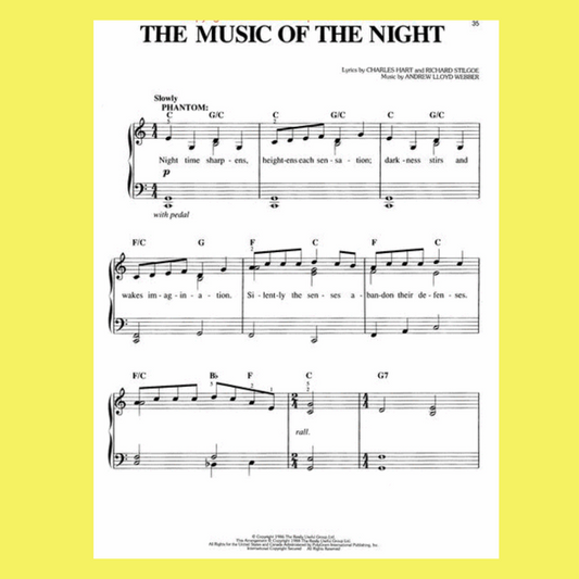 Phantom Of The Opera Easy Piano Vocal Selections Book