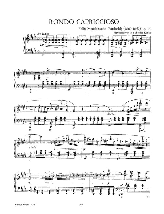 Mendelssohn - Rondo Capriccioso Op 14 For Piano Solo Book