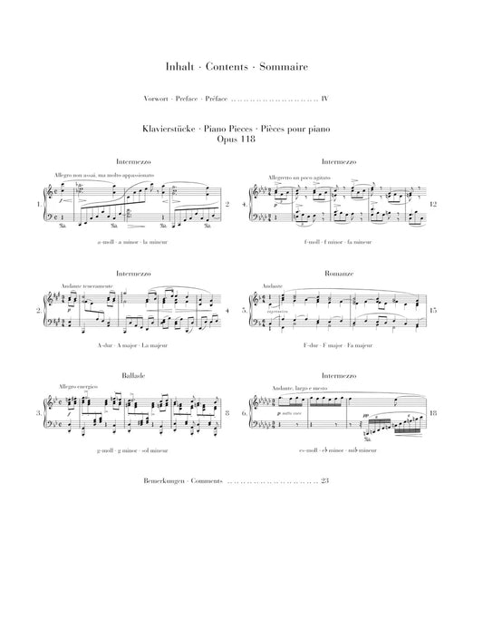 Brahms - Piano Pieces Op 118 Urtext Edition Book