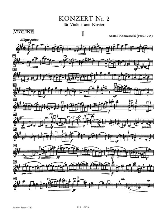 Komarovsky - Concerto No 2 A Violin with Piano Accompaniment Book