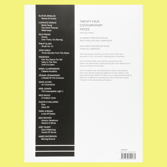 24 Contemporary Pieces For Solo Piano Book (Einaudi, Muhly, Harle, Frahm, Glass)