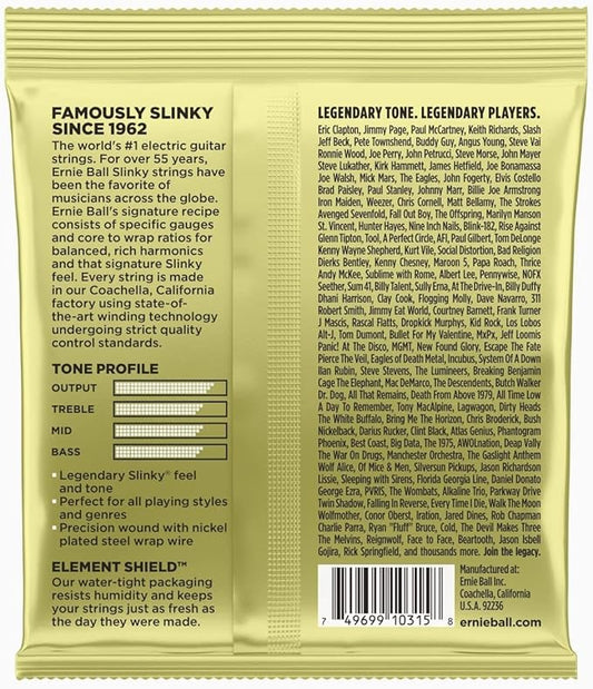 Ernie Ball Regular Slinky Classic Rock n Roll Pure Nickel Wrap Electric Guitar Strings Set - 10-46
