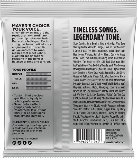 Ernie Ball John Mayer Signature Silver Slinky Nickel Wound Electric Guitar Strings Set - 10.5-47