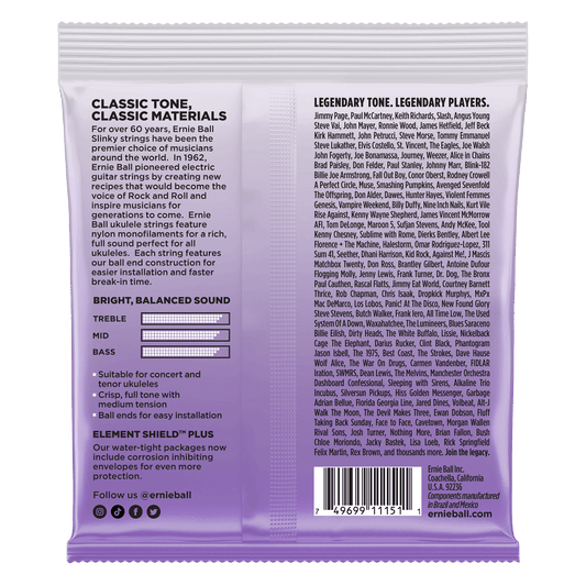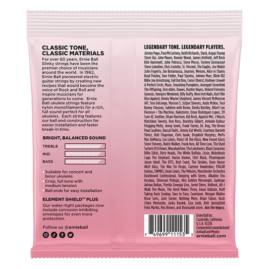 Ernie Ball Concert & Tenor Wound Low-G Nylon Ball-End Ukulele Strings - Black