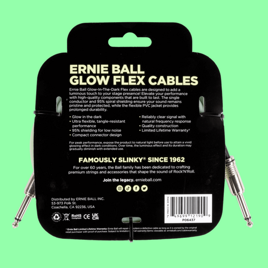 Ernie Ball Flex Instrument Cable Straight/Straight (10ft Glow in the Dark)