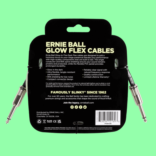 Ernie Ball Flex Instrument Cable Straight/Straight (20ft Glow in the Dark)