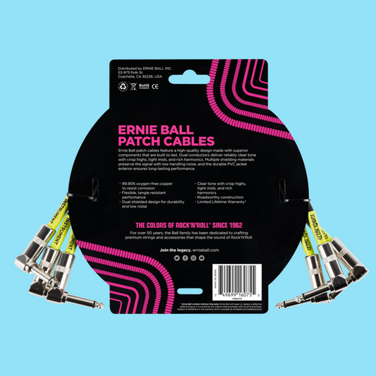 Ernie Ball 30cm Angle / Angle Patch Instrument Cable (3 Pack in Black)