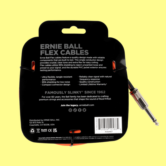 Ernie Ball Flex Instrument Cable Straight/Straight (20ft in Orange)