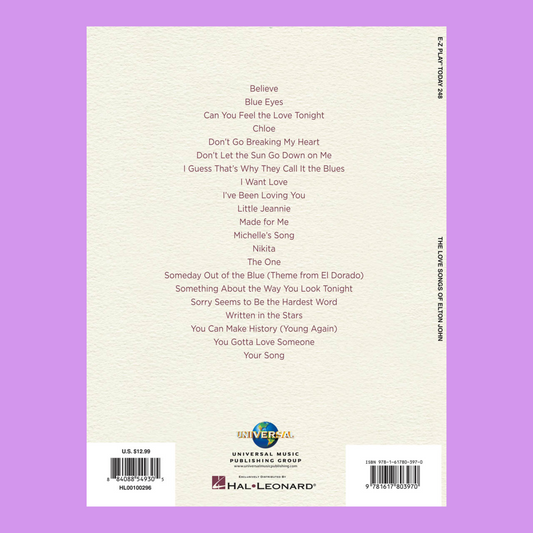 The Love Songs of Elton John - EZ Play Piano Volume 248 Songbook