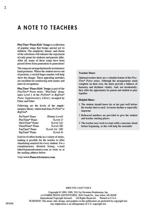 Faber Piano Adventures: PlayTime Piano Kid's Songs Level 1 Book