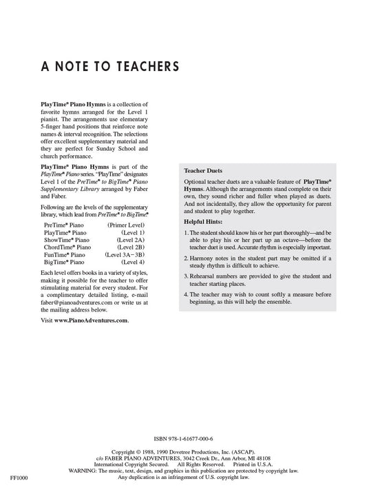 Faber Piano Adventures: PlayTime Piano Hymns Level 1 Book