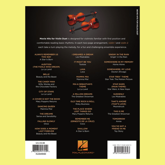 Movie Hits For Violin Duet Book