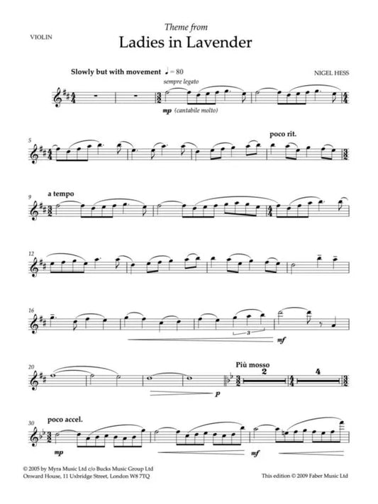 Nigel Hess - Theme from Ladies In Lavender Violin with Piano Accompaniment Book