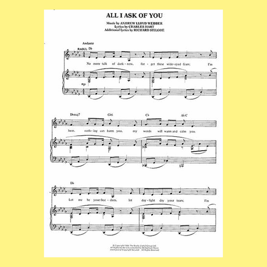 The Phantom of the Opera - All I Ask Of You Piano and Vocal Sheet Music