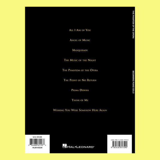 Phantom Of The Opera Beginning Piano Solos Book
