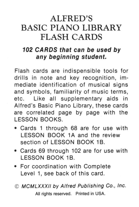 Alfred's Basic Piano Library - Flash Cards Level 1A & 1B (102 Cards)