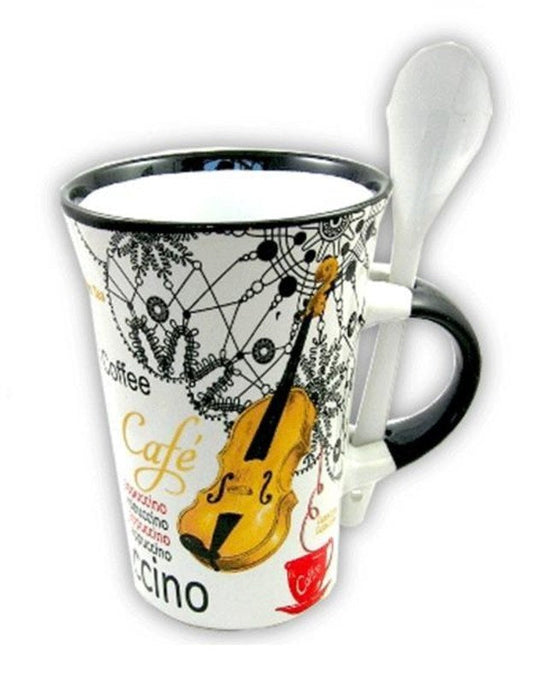 Cappuccino Mug With Spoon - Violin Design (White)