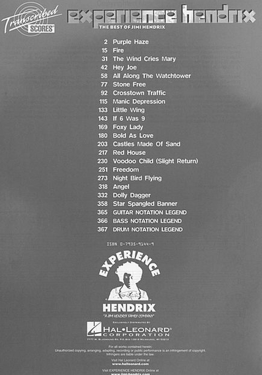 Jimi Hendrix - Experience Hendrix Transcribed Score Book