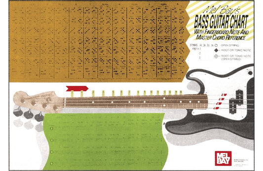 Electric Bass Guitar - Wall Chart with Fingerboard Note & Master Chord Reference