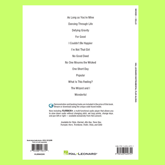Wicked A New Musical For Cello Play Along Book/Ola (Arriving Early Jan)