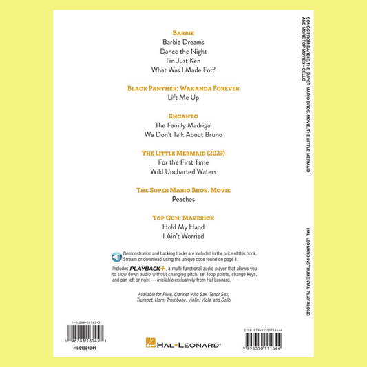 Songs from Barbie, Little Mermaid, Super Mario Bros Movies Cello Book/Ola