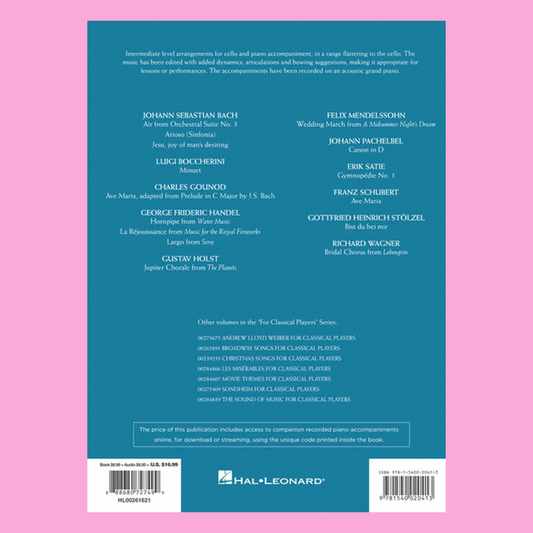 Wedding Music For Classical Players - Cello with Piano Accompaniment Book/Ola