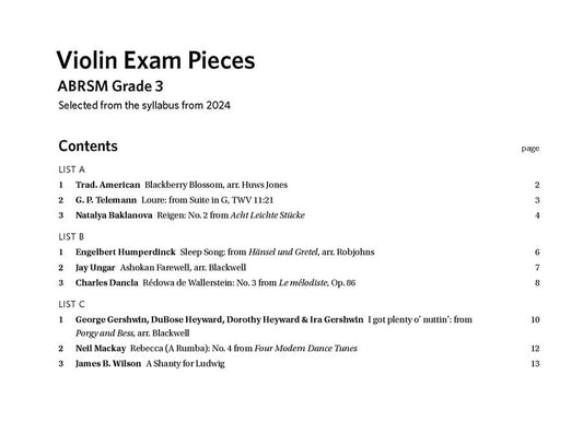 ABRSM Violin Exam Pieces Grade 3 Violin (2024) with Piano Accompaniment Book