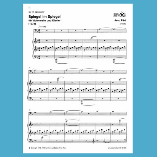 Arvo Parts - Spiegel im Spiegel Cello Solo with Piano Accompaniment Book