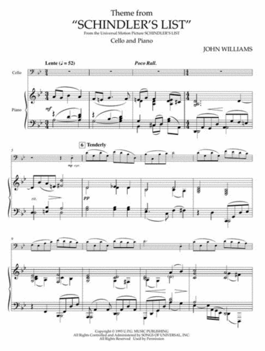 John Williams Theme From Schindlers List - Cello with Piano Accompaniment