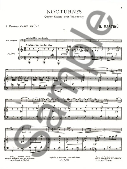 Martinu - Nocturnes 4 Etudes For Cello/Piano