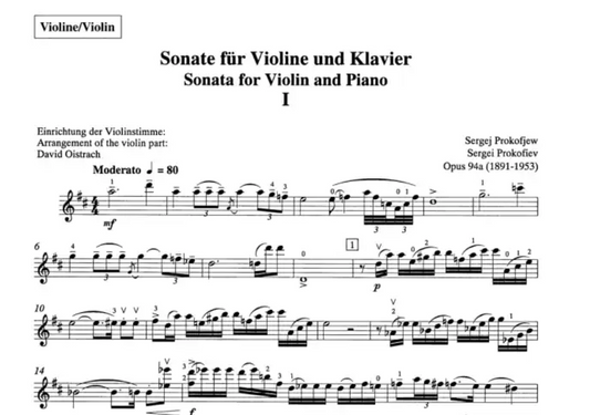 Prokofieff - Sonata No 2 Op 94A For Violin with Piano Accompaniment Book