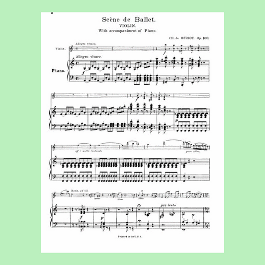 Beriot - Scene De Ballet Op 100 For Violin with Piano Accompaniment Book