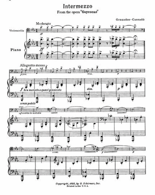 Enrique Granados - Intermezzo For Cello with Piano Accompaniment Sheet Music