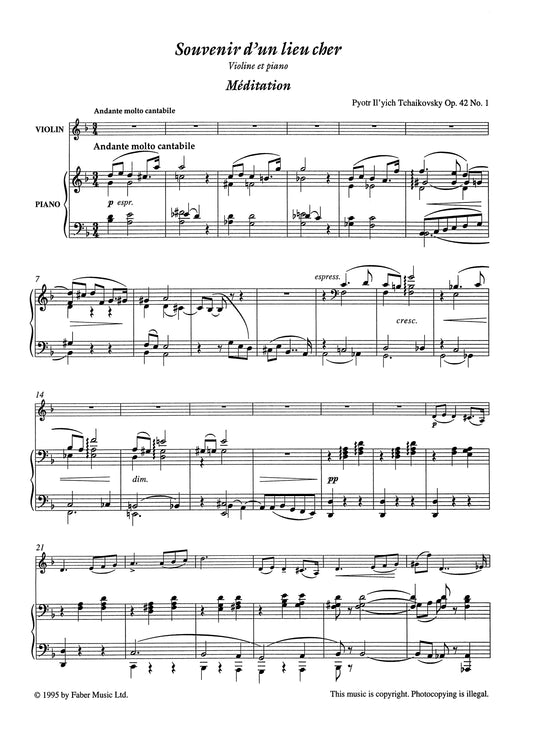 Tchaikovsky - Souvenir Dun Lieu Cher Violin with Piano Accompaniment Book