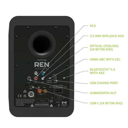Kanto REN 200W Powered Bookshelf Speakers with HDMI ARC, USB-C, and Bluetooth 5.3 - Matte Black, Pair
