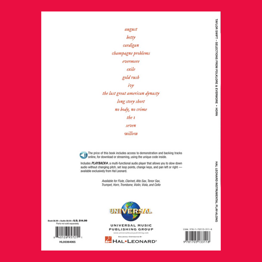 Taylor Swift - Folklore & Evermore Horn Play Along Book/Ola