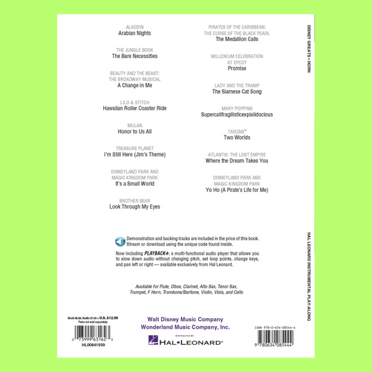 Disney For Horn Easy Instrumental Playalong Bk/Ola