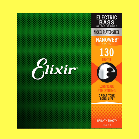 Elixir 15430 Nanoweb Light B Long Scale Bass Guitar Single String Gauge - 0.130