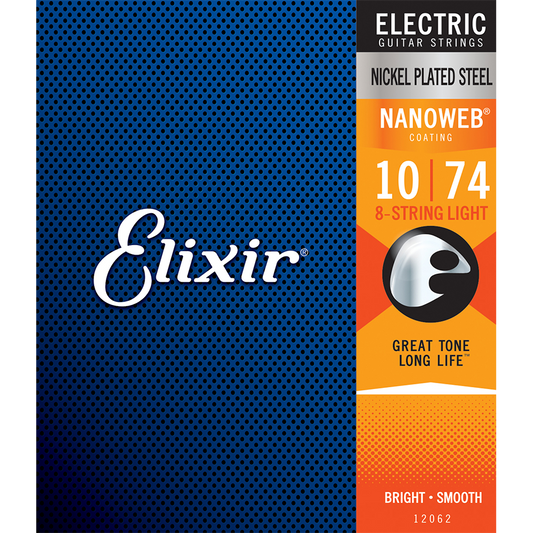 Elixir 12062 Electric Guitar Nanoweb Nickel 8-String Light String Set 10-74