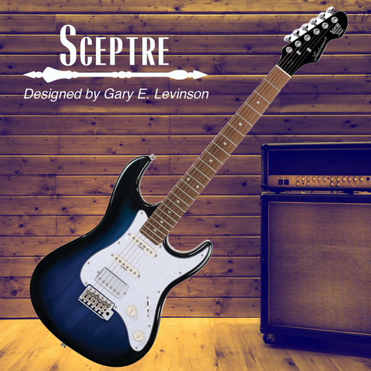 Sceptre Ventana Deluxe Double Cutaway HSS See Thru Ocean Blue Electric Guitar