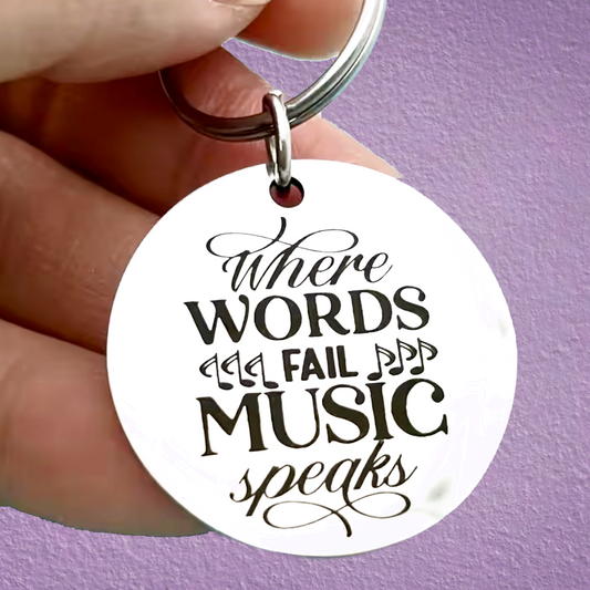 Where Words Fail, Music Speaks - Stainless Steel Keyring (3.0cm x 3.0cm)