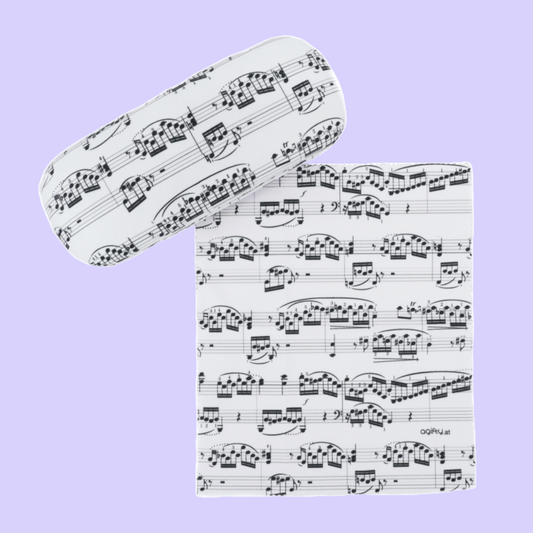 White Sheet Music Glasses Case & Matching Microfibre Cloth