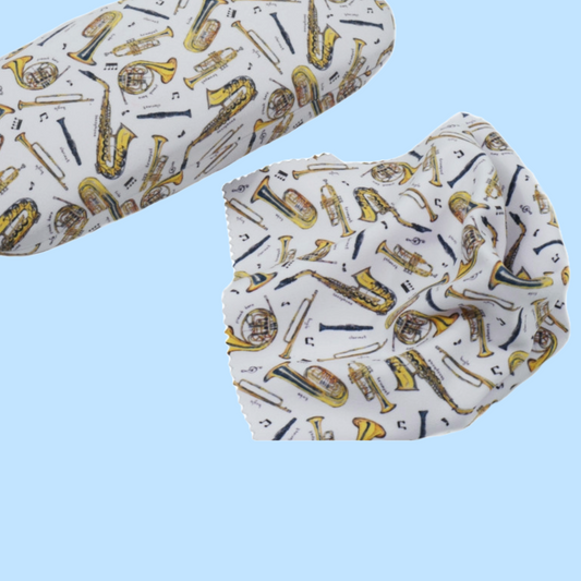 Glasses Case with Brass Music Instruments with Matching Microfibre Cloth
