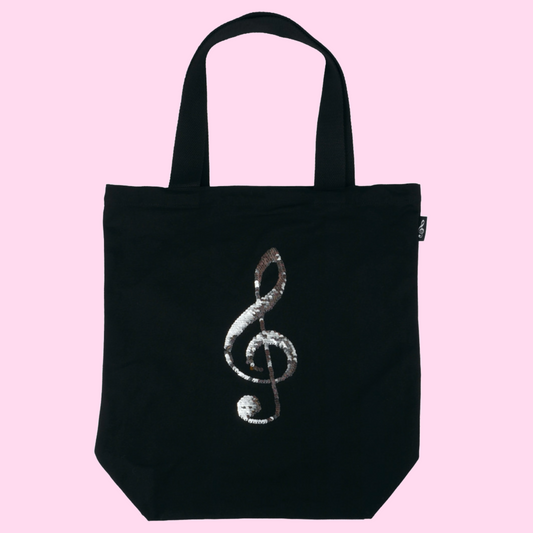 Black Canvas Music Bag with Reversible Gold/ Silver Sequinned Treble Clef