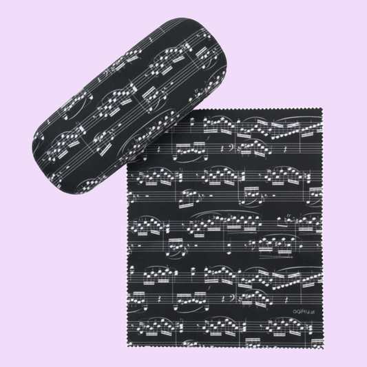 Black Sheet Music Glasses Case & Matching Microfibre Cloth
