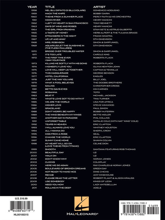 Grammy Awards Record Year (1958-2011) - Ez Play Piano Volume 160 Songbook