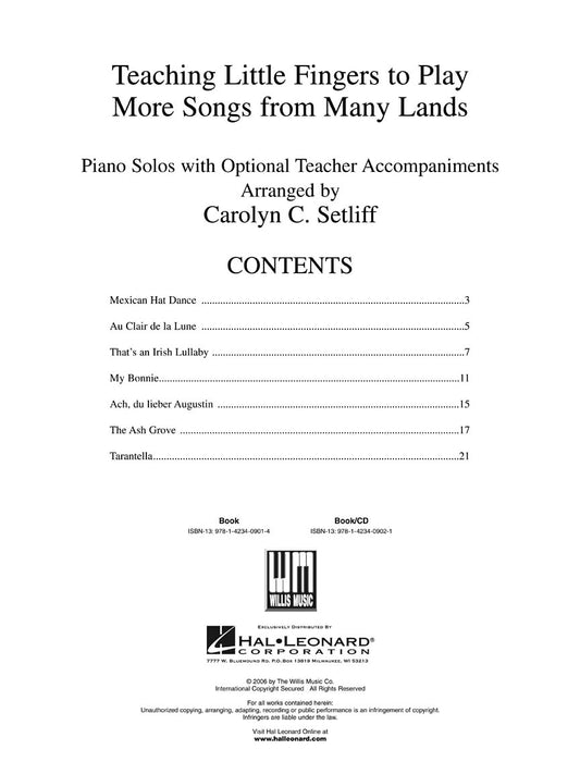 Teaching Little Fingers To Play More Children's Songs Book/Cd