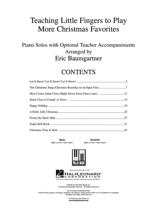 Teaching Little Fingers To Play - More Christmas Favorites Book