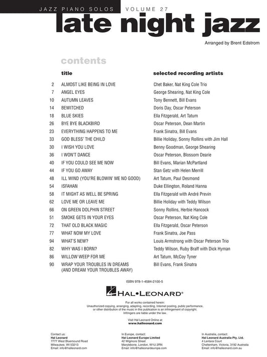Late Night Jazz - Jazz Piano Solos Volume 27 Book